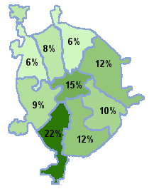 Арбат, Замоскворечье, Сокол, Аэропорт, Люблино, Тверской, Беговой, Марьина роща, Тимирязевский, Бутырский, Марьино, Хованский , Владыкино, Останкино, Щукино, Даниловский, Преображенский, Юго-западный, Донской, Савеловский, Якиманка