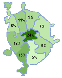 Арбат, Замоскворечье, Сокол, Аэропорт, Люблино, Тверской, Беговой, Марьина роща, Тимирязевский, Бутырский, Марьино, Хованский , Владыкино, Останкино, Щукино, Даниловский, Преображенский, Юго-западный, Донской, Савеловский, Якиманка