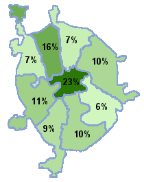 Арбат, Замоскворечье, Сокол, Аэропорт, Люблино, Тверской, Беговой, Марьина роща, Тимирязевский, Бутырский, Марьино, Хованский , Владыкино, Останкино, Щукино, Даниловский, Преображенский, Юго-западный, Донской, Савеловский, Якиманка