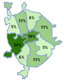 Арбат, Замоскворечье, Сокол, Аэропорт, Люблино, Тверской, Беговой, Марьина роща, Тимирязевский, Бутырский, Марьино, Хованский , Владыкино, Останкино, Щукино, Даниловский, Преображенский, Юго-западный, Донской, Савеловский, Якиманка