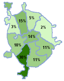 Арбат, Замоскворечье, Сокол, Аэропорт, Люблино, Тверской, Беговой, Марьина роща, Тимирязевский, Бутырский, Марьино, Хованский , Владыкино, Останкино, Щукино, Даниловский, Преображенский, Юго-западный, Донской, Савеловский, Якиманка