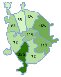 Июнь 2005 - Рейтинг округов Москвы по запросам на подключение к интернет