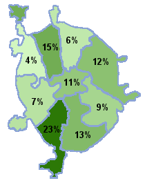 Арбат, Замоскворечье, Сокол, Аэропорт, Люблино, Тверской, Беговой, Марьина роща, Тимирязевский, Бутырский, Марьино, Хованский , Владыкино, Останкино, Щукино, Даниловский, Преображенский, Юго-западный, Донской, Савеловский, Якиманка