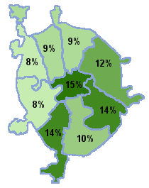Арбат, Замоскворечье, Сокол, Аэропорт, Люблино, Тверской, Беговой, Марьина роща, Тимирязевский, Бутырский, Марьино, Хованский , Владыкино, Останкино, Щукино, Даниловский, Преображенский, Юго-западный, Донской, Савеловский, Якиманка