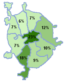 Арбат, Замоскворечье, Сокол, Аэропорт, Люблино, Тверской, Беговой, Марьина роща, Тимирязевский, Бутырский, Марьино, Хованский , Владыкино, Останкино, Щукино, Даниловский, Преображенский, Юго-западный, Донской, Савеловский, Якиманка
