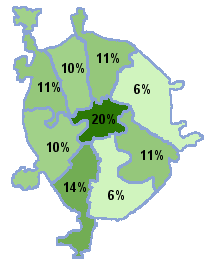 Арбат, Замоскворечье, Сокол, Аэропорт, Люблино, Тверской, Беговой, Марьина роща, Тимирязевский, Бутырский, Марьино, Хованский , Владыкино, Останкино, Щукино, Даниловский, Преображенский, Юго-западный, Донской, Савеловский, Якиманка