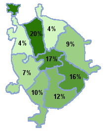 Арбат, Замоскворечье, Сокол, Аэропорт, Люблино, Тверской, Беговой, Марьина роща, Тимирязевский, Бутырский, Марьино, Хованский , Владыкино, Останкино, Щукино, Даниловский, Преображенский, Юго-западный, Донской, Савеловский, Якиманка