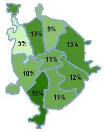 Арбат, Замоскворечье, Сокол, Аэропорт, Люблино, Тверской, Беговой, Марьина роща, Тимирязевский, Бутырский, Марьино, Хованский , Владыкино, Останкино, Щукино, Даниловский, Преображенский, Юго-западный, Донской, Савеловский, Якиманка