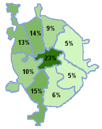 Арбат, Замоскворечье, Сокол, Аэропорт, Люблино, Тверской, Беговой, Марьина роща, Тимирязевский, Бутырский, Марьино, Хованский , Владыкино, Останкино, Щукино, Даниловский, Преображенский, Юго-западный, Донской, Савеловский, Якиманка