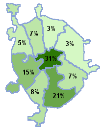 Арбат, Замоскворечье, Сокол, Аэропорт, Люблино, Тверской, Беговой, Марьина роща, Тимирязевский, Бутырский, Марьино, Хованский , Владыкино, Останкино, Щукино, Даниловский, Преображенский, Юго-западный, Донской, Савеловский, Якиманка