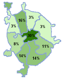 Арбат, Замоскворечье, Сокол, Аэропорт, Люблино, Тверской, Беговой, Марьина роща, Тимирязевский, Бутырский, Марьино, Хованский , Владыкино, Останкино, Щукино, Даниловский, Преображенский, Юго-западный, Донской, Савеловский, Якиманка