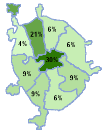 Арбат, Замоскворечье, Сокол, Аэропорт, Люблино, Тверской, Беговой, Марьина роща, Тимирязевский, Бутырский, Марьино, Хованский , Владыкино, Останкино, Щукино, Даниловский, Преображенский, Юго-западный, Донской, Савеловский, Якиманка