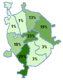 Арбат, Замоскворечье, Сокол, Аэропорт, Люблино, Тверской, Беговой, Марьина роща, Тимирязевский, Бутырский, Марьино, Хованский , Владыкино, Останкино, Щукино, Даниловский, Преображенский, Юго-западный, Донской, Савеловский, Якиманка
