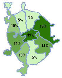 Арбат, Замоскворечье, Сокол, Аэропорт, Люблино, Тверской, Беговой, Марьина роща, Тимирязевский, Бутырский, Марьино, Хованский , Владыкино, Останкино, Щукино, Даниловский, Преображенский, Юго-западный, Донской, Савеловский, Якиманка