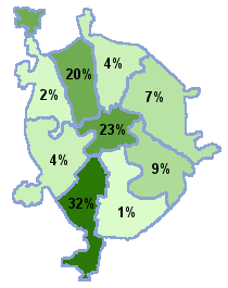 Арбат, Замоскворечье, Сокол, Аэропорт, Люблино, Тверской, Беговой, Марьина роща, Тимирязевский, Бутырский, Марьино, Хованский , Владыкино, Останкино, Щукино, Даниловский, Преображенский, Юго-западный, Донской, Савеловский, Якиманка