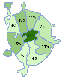 Арбат, Замоскворечье, Сокол, Аэропорт, Люблино, Тверской, Беговой, Марьина роща, Тимирязевский, Бутырский, Марьино, Хованский , Владыкино, Останкино, Щукино, Даниловский, Преображенский, Юго-западный, Донской, Савеловский, Якиманка