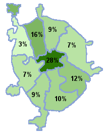 Арбат, Замоскворечье, Сокол, Аэропорт, Люблино, Тверской, Беговой, Марьина роща, Тимирязевский, Бутырский, Марьино, Хованский , Владыкино, Останкино, Щукино, Даниловский, Преображенский, Юго-западный, Донской, Савеловский, Якиманка