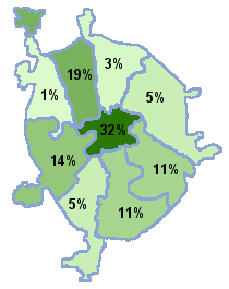 Арбат, Замоскворечье, Сокол, Аэропорт, Люблино, Тверской, Беговой, Марьина роща, Тимирязевский, Бутырский, Марьино, Хованский , Владыкино, Останкино, Щукино, Даниловский, Преображенский, Юго-западный, Донской, Савеловский, Якиманка