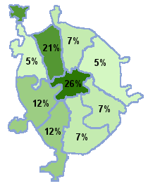 Арбат, Замоскворечье, Сокол, Аэропорт, Люблино, Тверской, Беговой, Марьина роща, Тимирязевский, Бутырский, Марьино, Хованский , Владыкино, Останкино, Щукино, Даниловский, Преображенский, Юго-западный, Донской, Савеловский, Якиманка