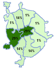 Арбат, Замоскворечье, Сокол, Аэропорт, Люблино, Тверской, Беговой, Марьина роща, Тимирязевский, Бутырский, Марьино, Хованский , Владыкино, Останкино, Щукино, Даниловский, Преображенский, Юго-западный, Донской, Савеловский, Якиманка